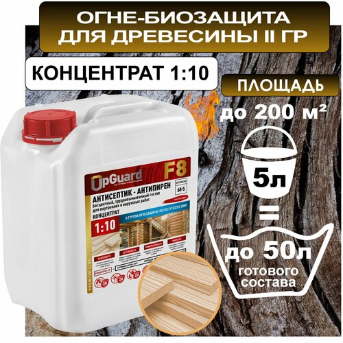 способ применения: Обработку проводить при температуре не ниже +5 ºС. Очистить поверхность от загрязнений и иных покрытий. При наличии грибковых поражений предварительно обработать поверхность отбеливателем UpGUARD B2. При использовании концентрированной версии состава UpGUARD F8 приготовить готовый раствор: в соотношении 1:10 (1 доля концентрата F8 на 9 долей воды) для внутренних работ, 1:7 (1 доля концентрата F8 на 6 долей воды) в качестве финишного покрытия для наружных работ (в местах, не подверженных прямому воздействию атмосферных осадков). Нанесение рабочего раствора проводить с помощью кисти, валика с синтетическим ворсом или с помощью любого разбрызгивающего устройства, в 2-3 слоя, с промежуточными сушками по 10-20 минут. При погружении - время выдержки 3-5 минут. Обработанную поверхность следует защитить от влаги до полного высыхания, не менее чем на 24 часа.