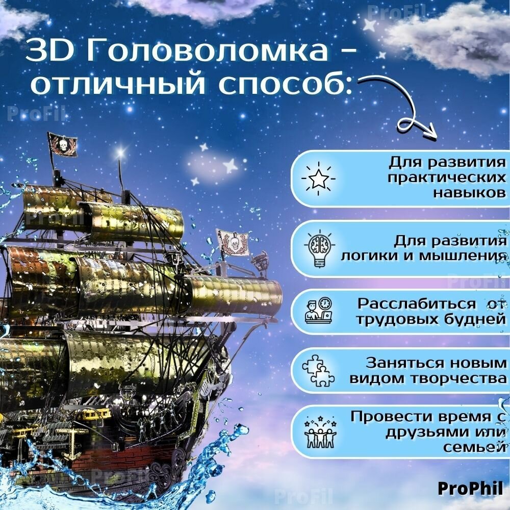 Антистресс набор творчества 3D пазлы корабль Королева Анна - это увлекательное сочетание игры и творчества, предназначенное как для детей, так и для взрослых. Этот набор пазлов является прекрасным выбором для тех, кто ищет антистресс и хочет попробовать себя в новом хобби. Подарочный набор содержит 3D пазлы, которые можно собирать поэлементно. Он представляет собой фигурные пазлы, состоящие из различных деталей из нержавеющей стали. Собирая эти пазлы, вы сможете насладиться игровым процессом и развить свои творческие навыки. Они станут отличным решением для детского времяпрепровождения и помогут ребенку развивать логическое мышление. Набор имеет 5 уровень сложности. Вы можете начать с простых пазлов и постепенно переходить к более сложным. Это поможет вам почувствовать себя настоящим мастером и достичь новых высот в своем творчестве. Готовый пазл станет стильным элементом декора. После сборки он превратятся в объемную фигуру, которые можно использовать в качестве украшения для дома или офиса. Набор творчества 3D пазлы корабль Королева Анна - это надежный способ расслабиться и насладиться игровым процессом. Подарите его себе или своему ребенку, и он станет прекрасным выбором для развлечения и развития. Приобретите этот набор пазлов и откройте для себя новые грани своего творчества.
