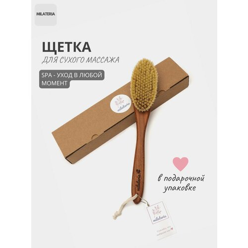 Жесткая массажная премиум щетка c щетиной "мексиканского кактуса тампико" из натурального бука от бренда "Milateria".