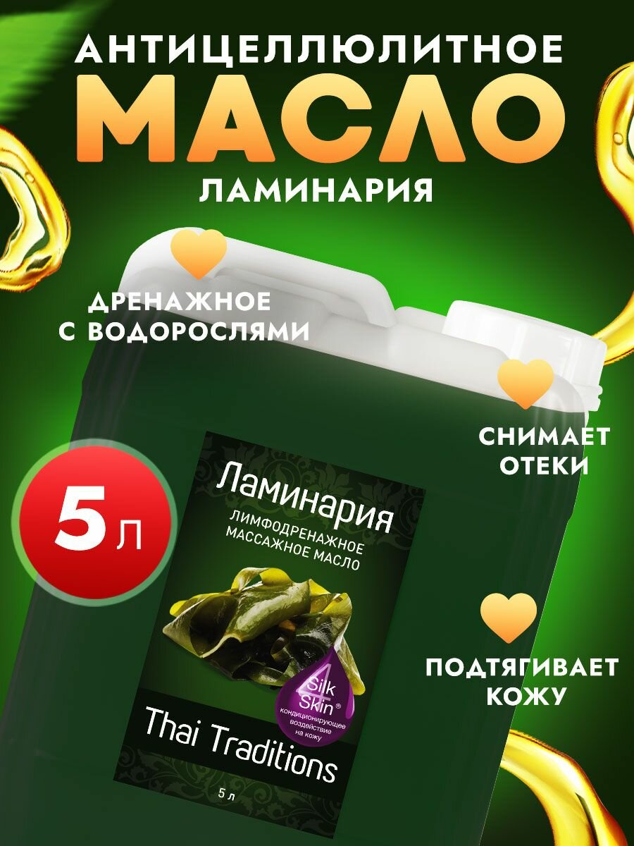 Антицеллюлитное масло для массажа тела с водорослями массажное профессиональное натуральное лимфодренажное корректирующее фигуру от растяжек Thai Traditions Ламинария, 5 л.