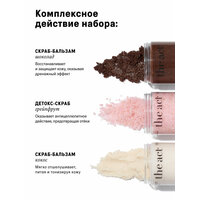 В наборе самые популярные скрабы от The Act: кокосовый скраб, грейпфрутовый и кофейный с ароматом шоколада