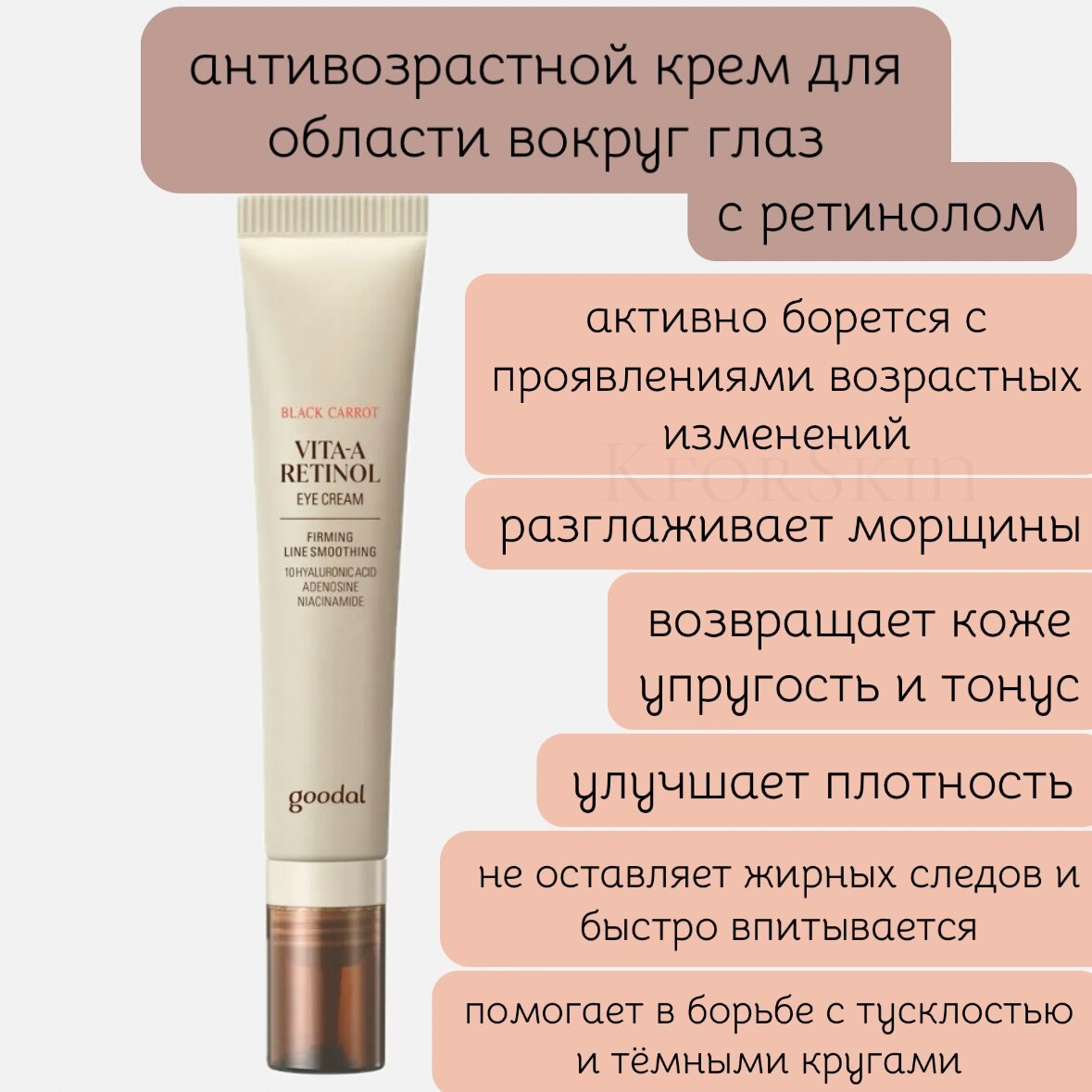 Антивозрастной крем для области вокруг глаз с ретинолом Goodal Black Carrot Vita-A Retinol Eye Cream (30 мл.): сравнение цен, характеристики, фото, актуальное наличие и цены.