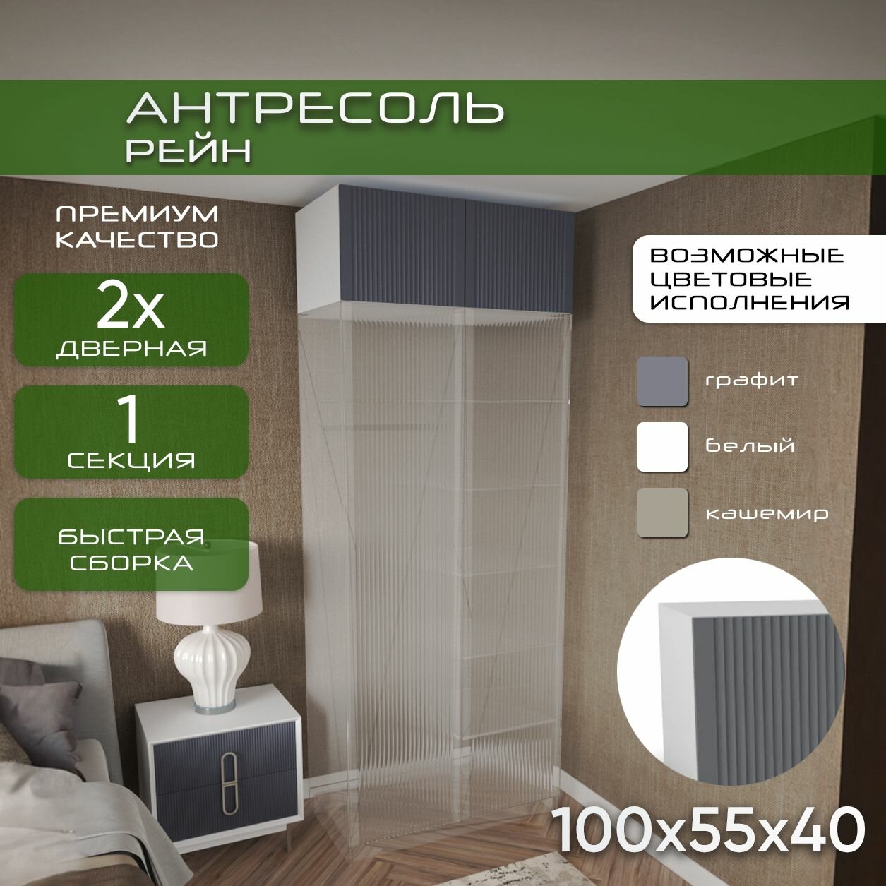 Антресоль 100х55х40 Рейн – это стильное и функциональное решение для организации пространства вашего дома. Эта мебельная антресоль станет отличным дополнением любого шкафа, предлагая дополнительное место для хранения вещей. Изготовленная из качественного МДФ с мягким на ощупь покрытием, антресоль выглядит современно и привлекательно, сочетая белый корпус и графитовый фасад.