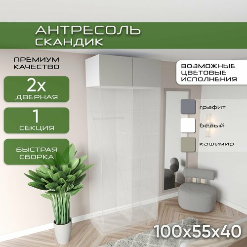 Антресоль 100х55х40, Скандик, лдсп белый/мдф кашемир soft touch, две двери: сравнение цен, характеристики, фото, актуальное наличие и цены.