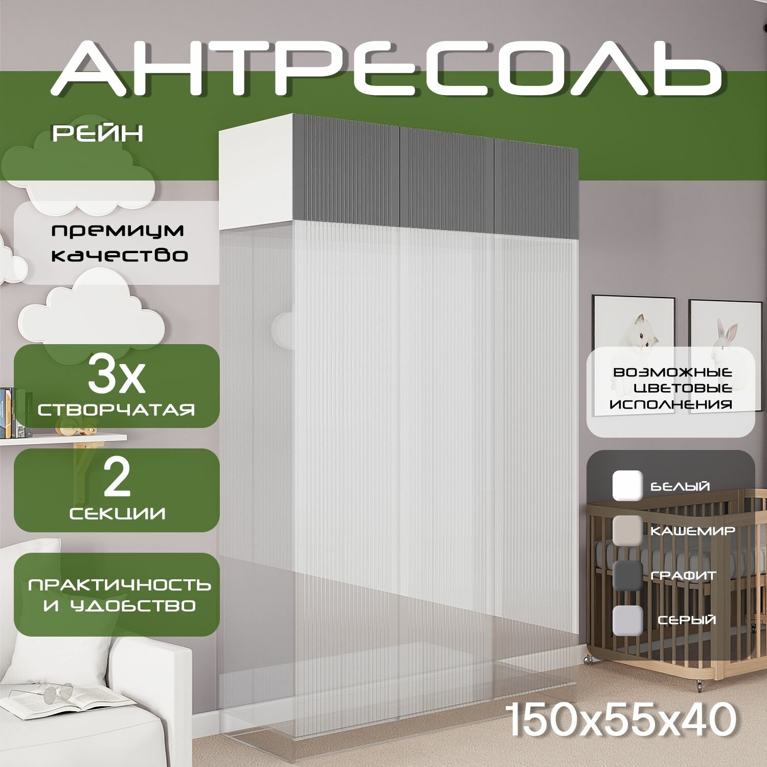 Антресоль 150х55х40 Рейн, белый/ мдф графит матовый Soft Touch, 3 двери, секции 100/50: сравнение цен, характеристики, фото, актуальное наличие и цены.