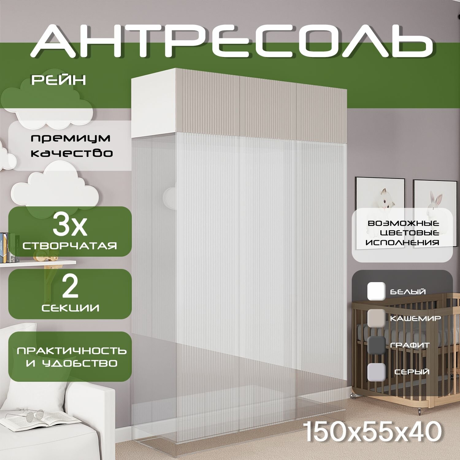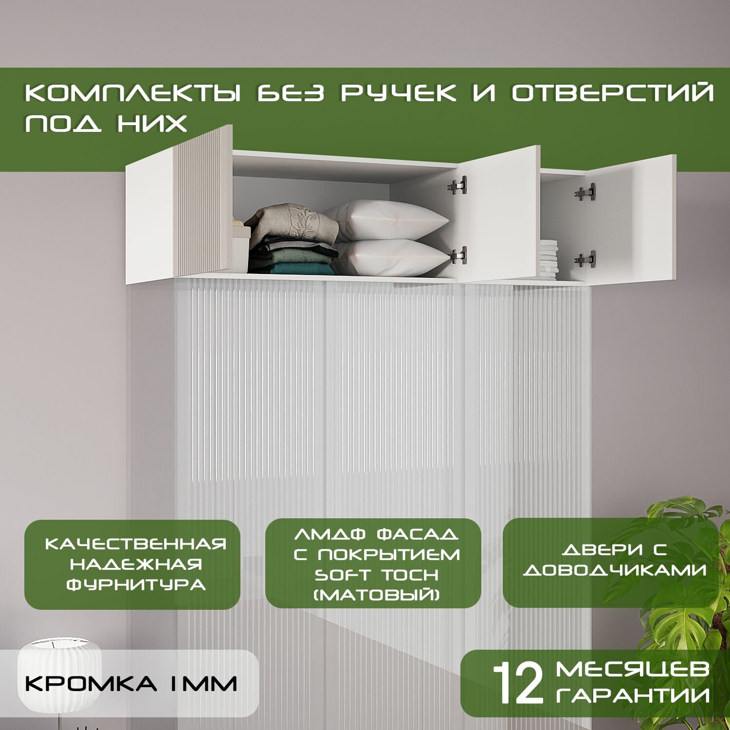Антресоль 150х55х40 Рейн, белый/ мдф кашемир матовый Soft Touch, 3 двери, секции 100/50: сравнение цен, характеристики, фото, актуальное наличие и цены.
