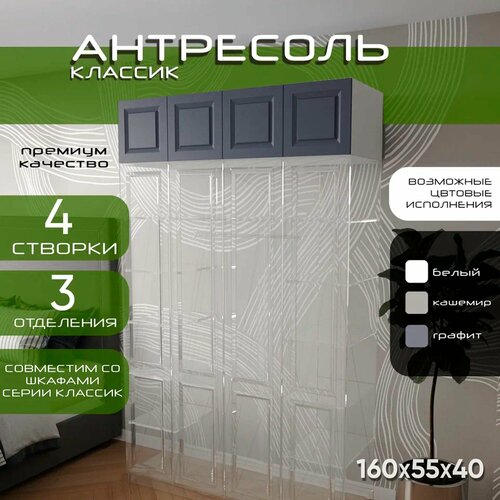 Антресоль 160х55х40 Классик, белый/ мдф графит матовый Soft Touch, 4 двери, секции 40/80/40: сравнение цен, характеристики, фото, актуальное наличие и цены.