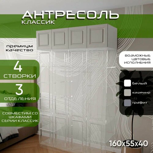 Антресоль 160х55х40 Классик, корпус белый, фасад мдф кашемир матовый Soft Touch, 4 двери, секции 40/80/40: сравнение цен, характеристики, фото, актуальное наличие и цены.