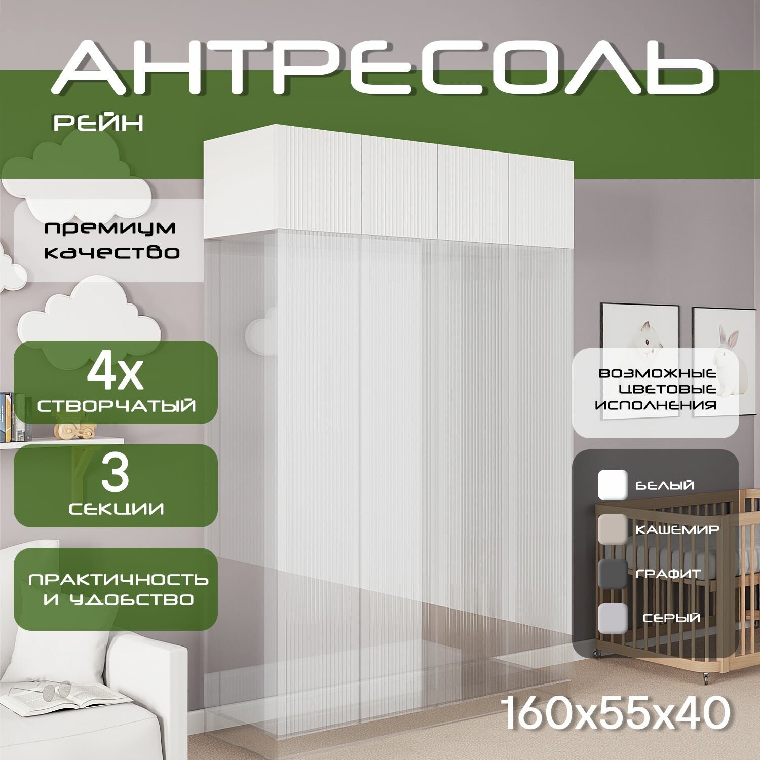 Антресоль 160х50х40 Рейн, белый/ мдф белый матовый Soft Touch, 4 двери, секции 40/80/40: сравнение цен, характеристики, фото, актуальное наличие и цены.