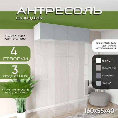 Антресоль 160х55х40 Скандик, лдсп белый/мдф серый soft touch, 4 двери, секции 40/80/40: сравнение цен, характеристики, фото, актуальное наличие и цены.