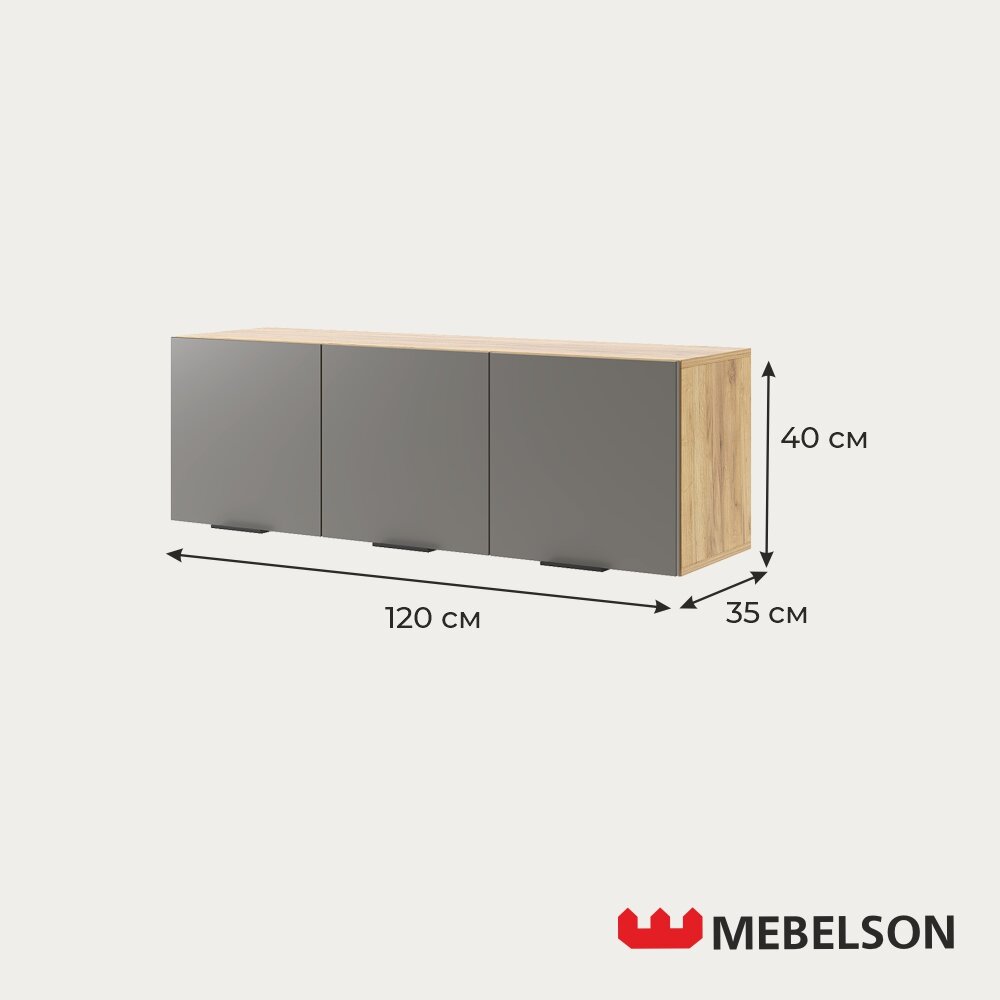 Антресоль трехдверная «Бери», дуб крафт золотой/графит, 120х35х40 см, Mebelson: сравнение цен, характеристики, фото, актуальное наличие и цены.