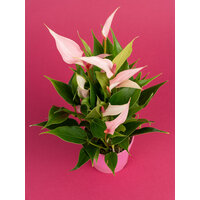 Этот сорт интересен тем, что один цветок может иметь два покрывала, одно длинное, другое более мелкое. Сорт молодой, но в последнее время пользуется огромной популярностью. Возможности этого маленького антуриума безграничны.
