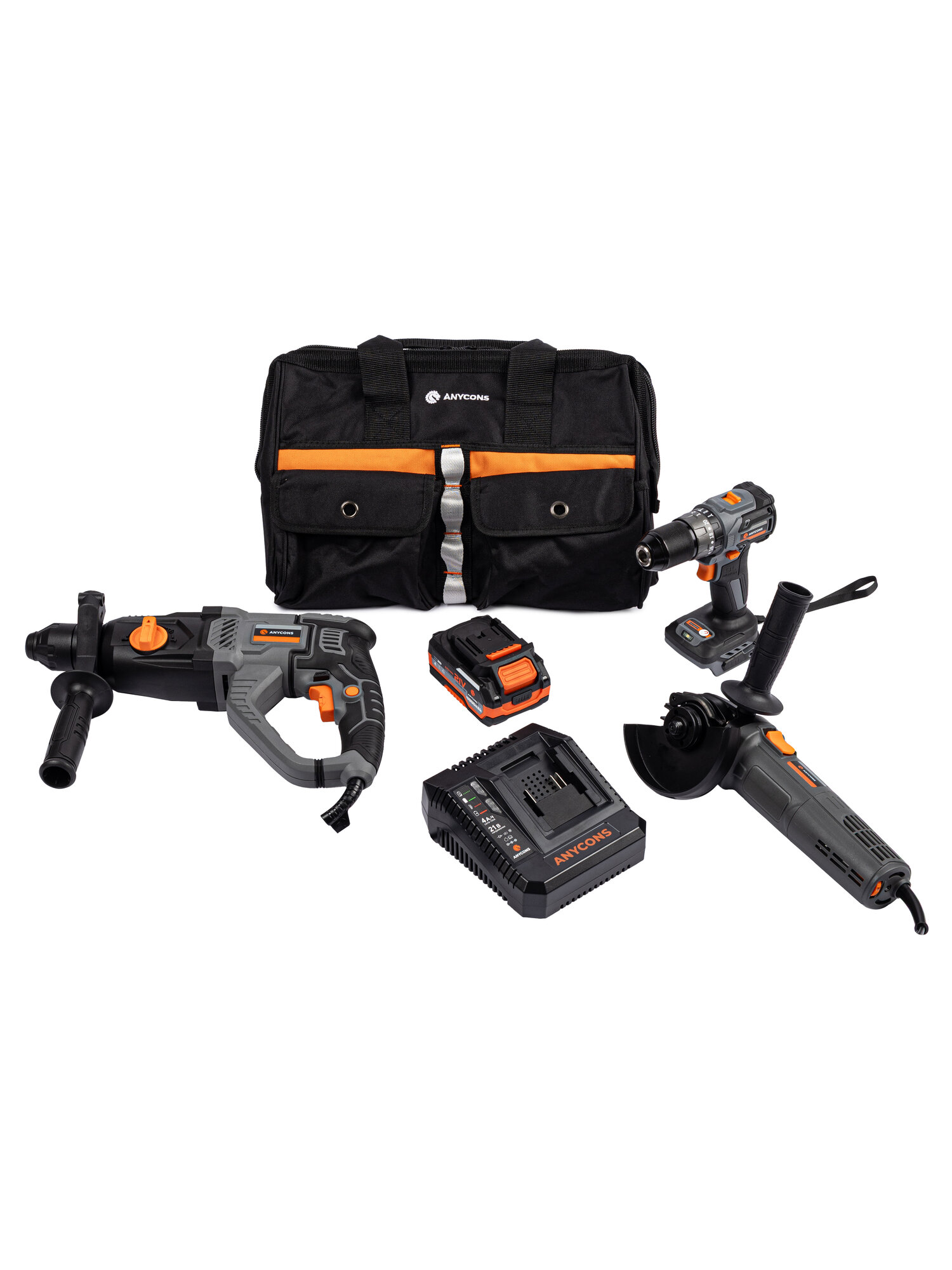 Купить Anycons Набор из 3 инструментов ( УШМ сетевая 125, сетевой перфоратор, шуруповерт) AC-CST705 с доставкой по всей России.