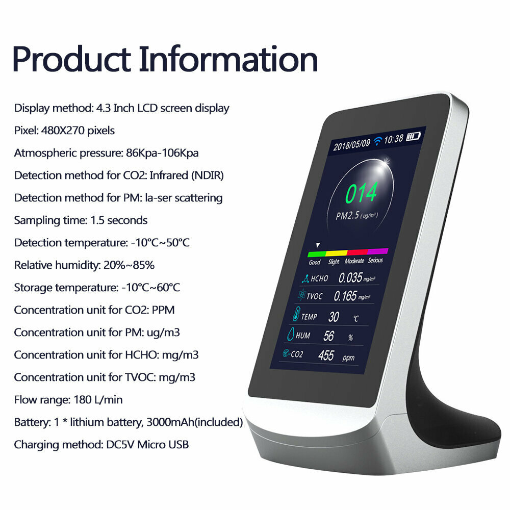 Aony Wi-Fi детектор качества воздуха Wi-Fi инфракрасный диоксид углерода CO2 пыль PM2,5 PM1.0 PM10 HCHO TVOC детектор прибор-JIANGYIN: сравнение цен, характеристики, фото, актуальное наличие и цены.