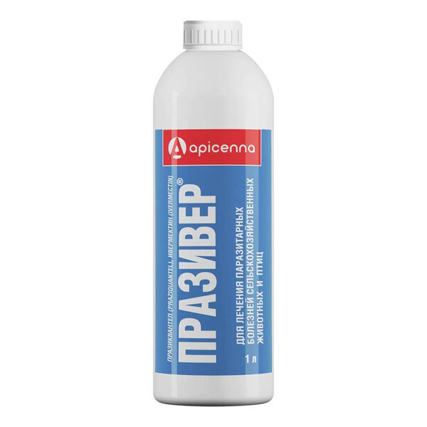| Порядок применения и дозировка | Празивер применяют животным перорально: крупному рогатому скоту и лошадям индивидуально, другим видам животных — индивидуально или групповым способом в смеси с концентрированным кормом.Крупному рогатому скоту, лошадям, овцам и козам Празивер применяют при нематодозах пищеварительного тракта (гемонхоз, буностомоз, эзофагостомоз, нематодироз, хабертиоз, коопериоз, остертагиоз, стронгилоидоз, трихостронгилез, трихоцефалез, неоаскаридоз), нематодозах легких (диктиокаулез, мюллериоз, цистокаулез, протостронгилез), цестодозах (мониезиоз, авителлиноз, тизаниезиоз), гиподерматозе, гастрофиллезе, эзофагостомозе и саркоптоидозах в дозе 0,4 мл на 10 кг массы животного, при эстрозе — 0,6 мл на 10 кг массы животного.При групповом способе применения дозу препарата, рассчитанную на группу не более 100 овец (коз), смешивают с концентрированным кормом из расчета 150 — 200 г корма на животное.Полученную лекарственную смесь засыпают в кормушки, обеспечив животным к ним свободный доступ.Обработку животных против гельминтов проводят перед постановкой на стойловое содержание и весной перед выгоном на пастбище; против оводовых инвазий сразу после окончания лета оводов — однократно, при саркоптозе, псороптозе и хориоптозе — по показаниям двукратно с интервалом 7 -1 2 дней.Свиньям Празивер применяют в дозе 0,6 мл на 10 кг массы животного: при нематодозах (аскаридоз, эзофагостомоз, метастронгилез, трихоцефалез, стронгилоидоз) — однократно, при саркоптозе — двукратно с интервалом 7 -1 0 суток.Препарат в дозе, рассчитанной на группу не более чем 50 свиней, смешивают с половиной нормы корма и раскладывают по кормушкам, обеспечивая животным свободный доступ к ним.Цыплятам-бройлерам, ремонтному молодняку кур, гусям и уткам Празивер применяют при нематодозах (гангулетеракидоз, аскаридиоз, гетеракидоз) и цестодозах (дрепанидотениоз, гименолепидозы, райетинозы) с кормом в утреннее кормление в дозе 0,2 мл на 1 кг массы птицы.Перед использованием емкость с лекарственным препаратом необходимо тщательно взболтать.Перед массовыми обработками каждую серию лекарственного препарата испытывают на небольшой группе животных ( 5 — 7 голов) разного возраста и массы.При отсутствии в течение 3 дней осложнений приступают к обработке всего поголовья. |