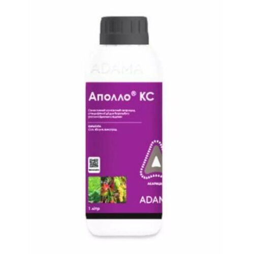 Аполло - эффективное и экологичное решение, позволяющее выстроить гибкую систему обработок для защиты виноградной лозы, яблони и земляники (маточники) от клещей. Препарат не оказывает отрицательного воздействия на полезных клещей (Amblyseius, Phytoseiulus, Typhlodromus, Zelzellia), полезных насекомых (Anthocoris, Chrysopa, Orius, Stethorus), пчёл (Apis spp.), хищных ос (Encarsia). Уникальный селективный контактный акарицид для защиты урожая яблок, винограда и земляники от клещей, обладающий овицидным действием. С высокой эффективностью уничтожает многие виды клещей, не наносит вред полезным клещам. Воздействует на яйца насекомых и подвижные стадии их развития, не контролирует взрослых клещей. Продолжительностью токсического действия не менее 30 суток. Достаточно 2-х обработок препаратом за сезон