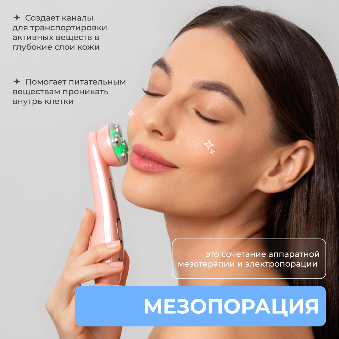 Аппарат 7 в 1 Nuori Микротоковый массажер для лица шеи и плеч электрический с эффектом мезотерапии и светотерапии RF лифтинг EMS