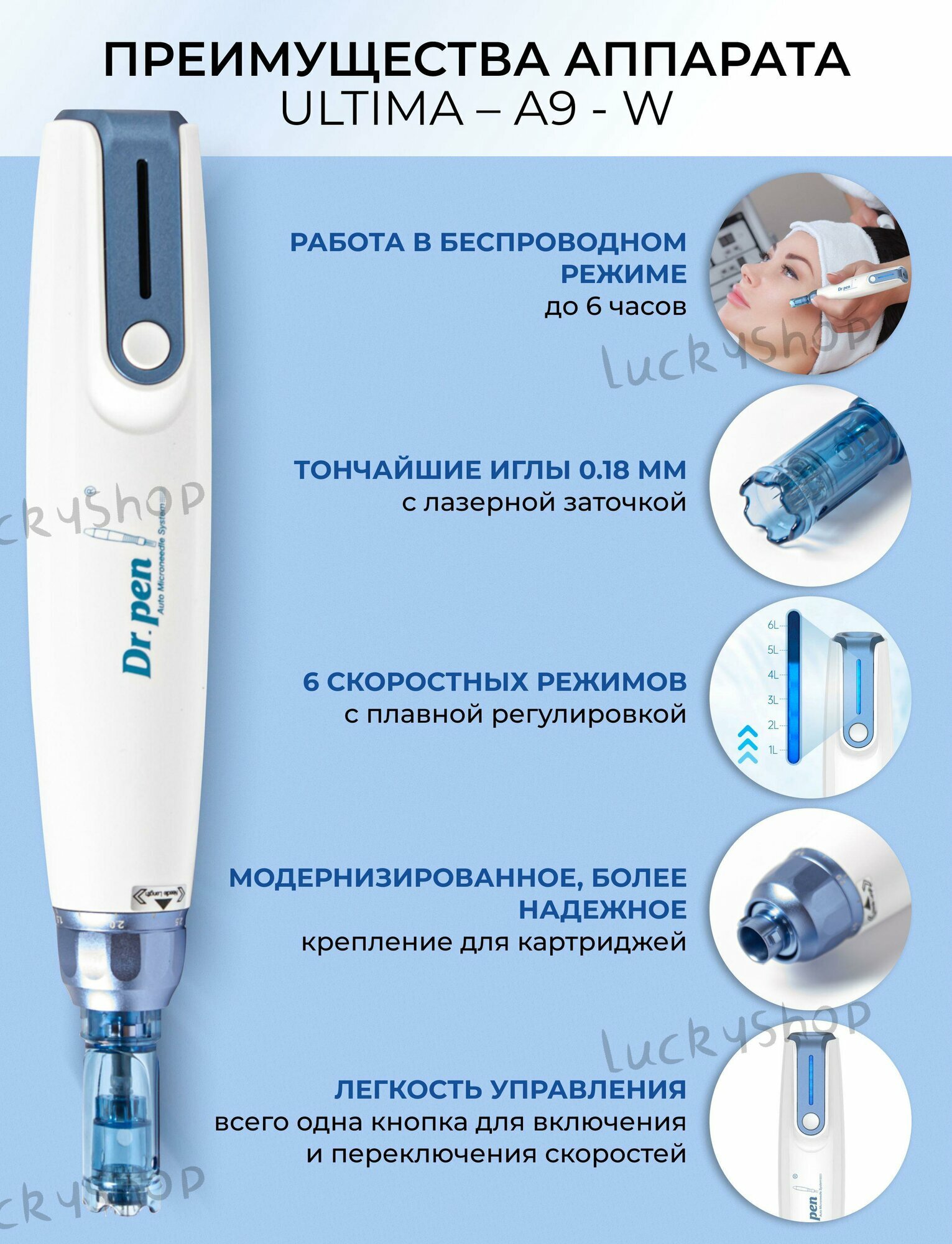 Купить Аппарат для фракционного микронидлинга Dr.Pen A9-W, 5 скоростей, 6 игл с доставкой по всей России. Аппарат для фракционного микронидлинга Dr.Pen A9-W, 5 скоростей, 6 игл: сравнение цен, характеристики, фото, актуальное наличие и цены.