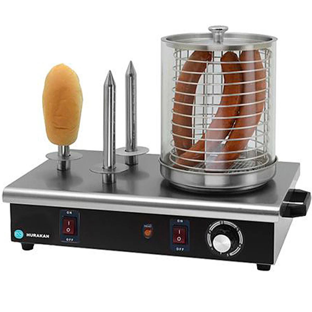 Купить Аппарат для hot dog Hurakan HKN-Y03, регулятор температуры, 0.7 кВт, 3 штыря для булочек, паровой с доставкой по всей России.