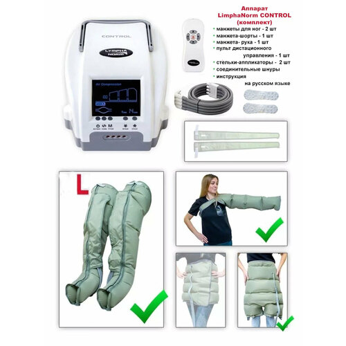 НАБОР лимфодренажный аппарат CONTROL LymphaNorm с манжетами: ДЛЯ НОГ (размер L)- 2 шт, ШОРТЫ -1 шт, ДЛЯ РУКИ - 1 шт. - комплексное решение для улучшения сосудистого кровотока ног, рук и тела, предназначен для предотвращения венозного и лимфатического застоя, для похудения