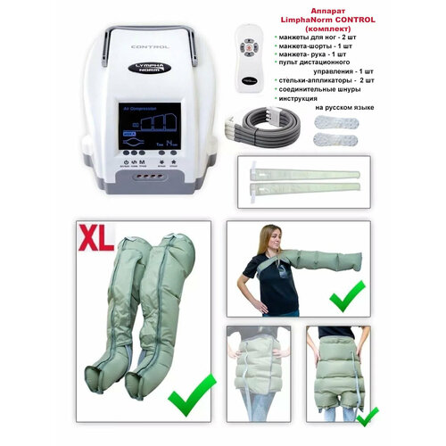 НАБОР лимфодренажный аппарат CONTROL LymphaNorm с манжетами: ДЛЯ НОГ (размер XL)- 2 шт, ШОРТЫ -1 шт, ДЛЯ РУКИ - 1 шт. - комплексное решение для улучшения сосудистого кровотока ног, рук и тела, предназначен для предотвращения венозного и лимфатического застоя, для похудения