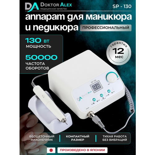 Аппарат для маникюра и педикюра Dr Alex SP-130, 50 000 об/мин, 130 Вт, 32В: сравнение цен, характеристики, фото, актуальное наличие и цены.