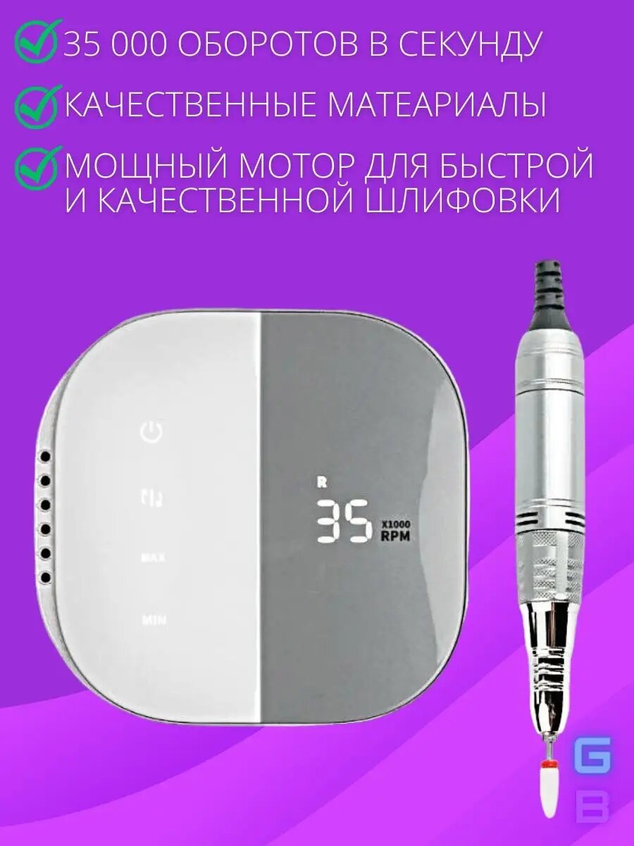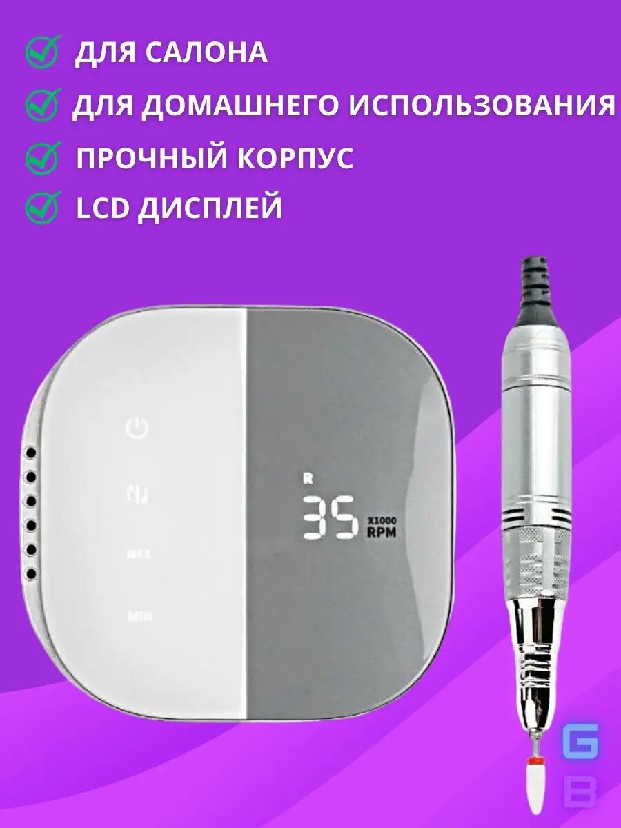 В подарок 4 фрезы ! Приветствуем вас, уважаемые любительницы и профессиональные мастера маникюра и педикюра! Представляем вам незаменимый помощник - аппарат для маникюра и педикюра. Этот профессиональный прибор обеспечивает быстрое и точное выполнение маникюра и педикюра, сокращая время для ваших повседневных процедур красоты и заботы о ногтях. Сенсорное управление. Скорость: 35000 об / мин - Мощность: 30 Вт - Функция увеличения/уменьшения скорости.
