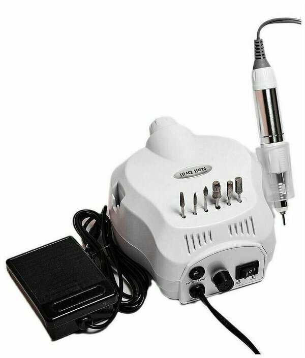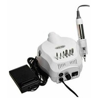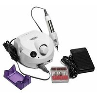 Многофункциональная машинка для маникюра и педикюра. На блоке питания расположены: регулятор скорости, переключатель прямого и реверсивного вращения (по часовой стрелке и против), переключатель ручного и ножного привода (от педали). В комплекте с маникюрным аппаратом идет 5 фрез с алмазным напылением, 1 металлическая насадка для сменных одноразовых колпачков, 6 одноразовых колпачков. Ручка маникюрного аппарата крепко фиксирует насадки цанговым зажимом. Блок управления оснащен держателем для ручки, который можно разместить как слева, так и справа, что позволяет удобно расположить аппарат на рабочем столе. Так же ручку можно разместить на специальной настольной подставке, идущей в комплекте. Преимущества: 1) Два направления вращения: прямое и реверсивное. 2) Плавная регулировка скорости от 0 до 45 000 об./мин. 3) Блок управления оснащен держателем для ручки, который можно разместить как слева, так и справа, что позволяет удобно расположить аппарат на рабочем столе. 4) Мощный микромотор обеспечивает стабильную работу без вибрации, сильного шума и перегрева при различных нагрузках 5) Удобное устройство смены насадок и надежной их фиксации существенно сокращает время работы. 6) Компактная и эргономичная конструкция корпуса блока управления. 7) Автоматическая остановка работы при перегрузке.