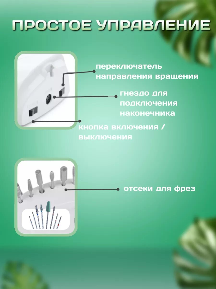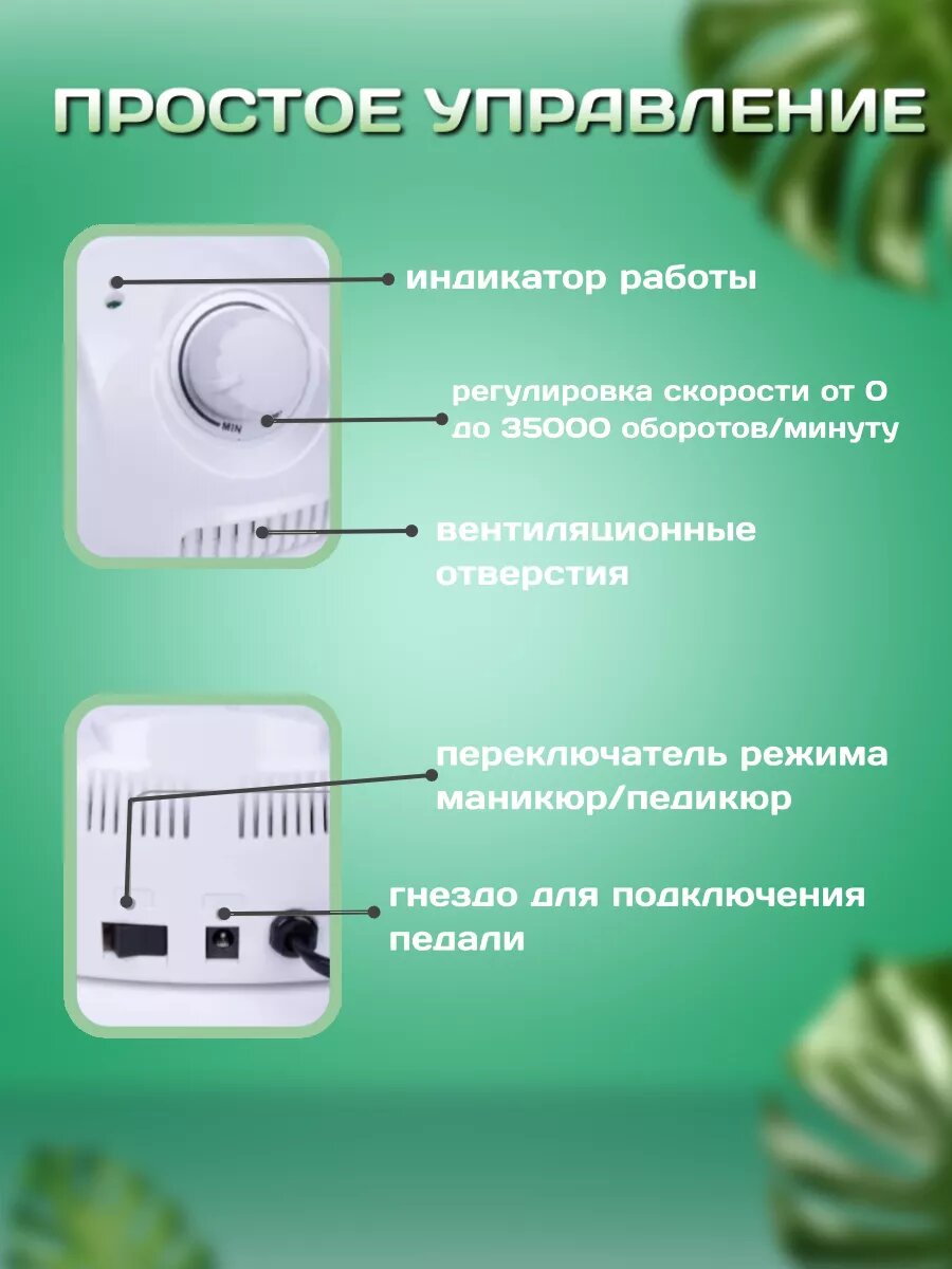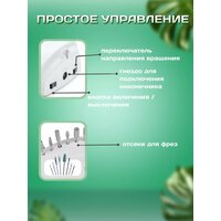 | Дополнительная информация | Во избежание поломки ручки и для её дальнейшей нормальной работы, выполните следующие действия: 1. Включите режим “F” и оставьте ручку работать на средних оборотах на 20 минут не извлекая тест-бор. 2. Дайте наконечнику остыть. 3. Переключите на режим “R” и оставьте ручку работать на средних оборотах на 20 минут не извлекая тест-бор. Меры предосторожности: Не оставляйте наконечник без присмотра и не допускайте перегрева! Не выключайте аппарат с открытым цанговым замком и без фрезы! Не допускайте перегрева блока при работе на малых и средних оборотах! Соблюдайте скоростной режим, в зависимости от размера фрезы! (см. Инструкцию) Если аппарат не работает, убедитесь, что включен правильный режим работы (на тыльной стороне аппарата): H(Hand) - без педали, F(Foot) - режим с педалью. |