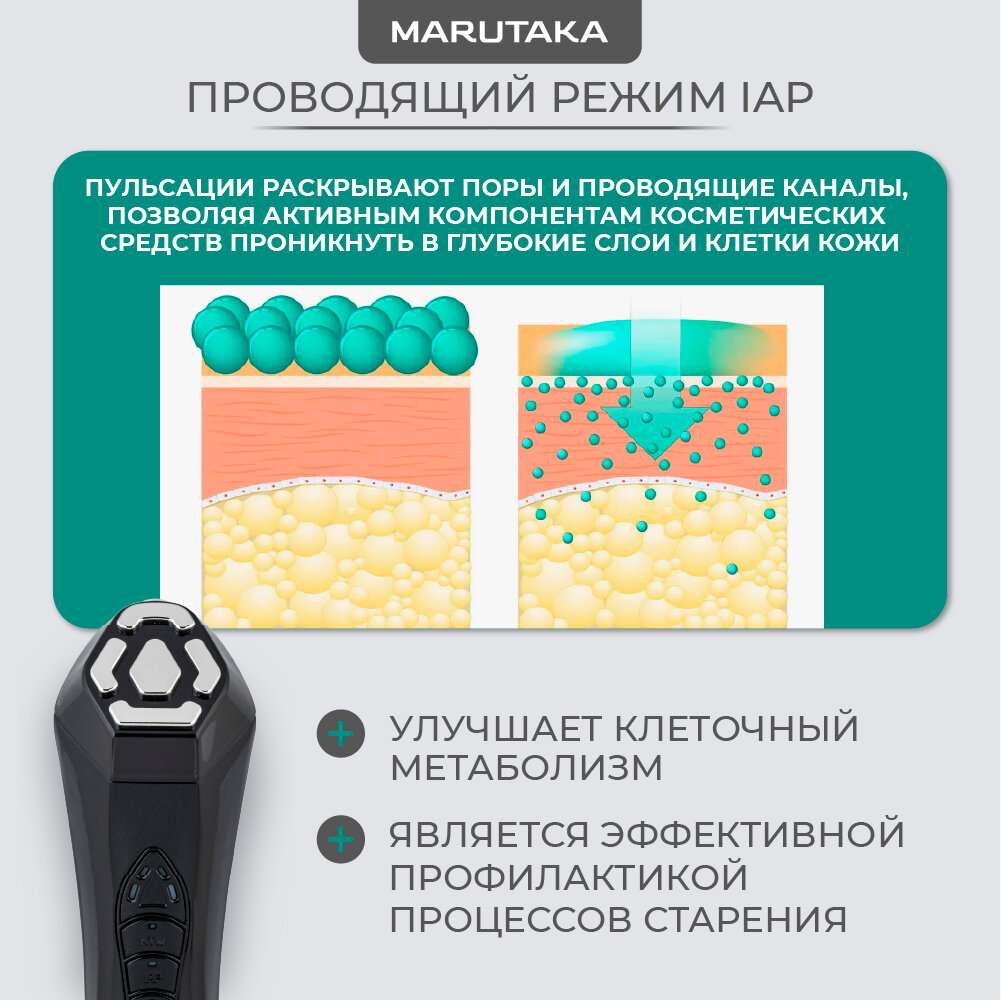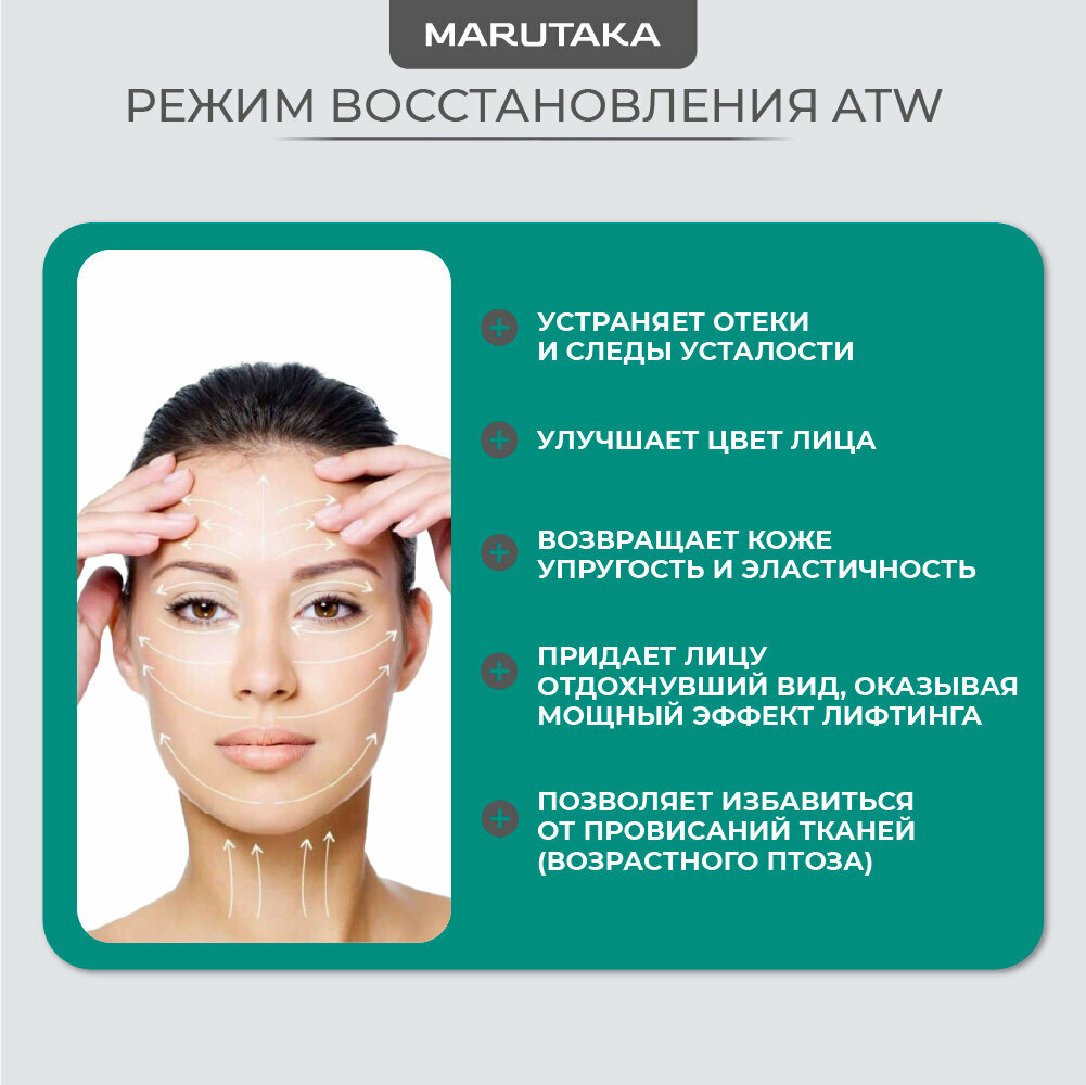 Marutaka LUXE – profhome аппарат для проведения домашней процедуры SMAS-лифтинга и моментальной подтяжки овала лица. Marutaka LUXE – самый мощный аппарат для ухода за кожей лица бренда Marutaka. Позволяет проводить в домашних условиях процедуру, аналогичную салонному SMAS-лифтингу. Премиум-девайс нового поколения разработан для интенсивной коррекции всех основных признаков старения кожи на клеточном уровне. Обеспечивает мгновенный лифтинг тканей. Всего за одну процедуру значительно подтягивает овал лица. Процедуры с Marutaka LUXE обладают накопительным и нарастающим эффектом: при проведении курса их действие с каждым разом усиливается. Бьюти-девайс нового поколения объединяет сразу несколько самых популярных омолаживающих методик воздействия на кожу. Позволяет получить дома эффект, аналогичный салонной процедуре SMAS-лифтинга. Marutaka LUXE воздействует на мышцы, дерму и клетки кожи с помощью 5 антивозрастных методик: RF-лифтинга, микропульсации, микротоковой терапии, вибромассажа и LED-терапии. Profhome аппарат прогревает дерму до максимально глубокого уровня и с помощью всего лишь одной процедуры значительно подтягивает линию овала лица. Отличие аппарата Marutaka LUXE от аналогичных приборов для домашнего ухода ощущается непосредственно в процессе процедуры. 1. Мощный, ощутимый прогрев тканей лица во время процедуры свидетельствует, что аппарат оказывает крайне глубокое воздействие RF-энергии на дерму. Усиленный прогрев позволяет максимально быстро активизировать выработку кожей собственного коллагена и эластина, запустить процесс обновления кожи на клеточном уровне, подтянуть провисающие ткани и сформировать четкую, красивую линию овала лица. 2. При воздействии на кожу ощущаются интенсивные покалывания. Данный тип стимуляции позволяет прибору более активно, чем аналогичные аппараты воздействовать на зоны лица с активной мимикой: расслабить мимические морщины, избавить их от гипертонуса и подтянуть носогубные складки. Также интенсивное воздействие микротоков, сопровождаемое усиленным покалыванием, позволяет моментально избавиться от отеков, в том числе послеоперационных, и вернуть упругость тканям, утратившим тонус. 3. Во время проведения процедуры с Marutaka LUXE наблюдается выраженная гиперемия (покраснение кожи), которая проходит в течение часа. Гиперемия говорит об эффективности процедуры и воздействии аппарата на мышцы лица и глубинные слои дермы. Временное покраснение – естественная составляющая аппаратных и лазерных методик, обеспечивающих безоперационную подтяжку контуров лица и запускающих процесс неоколлагенеза. 4. После завершения процедуры вы можете некоторое время ощущать мурашки на коже – это означает, что начался интенсивный процесс сокращения растянутых коллагеновых волокон, который обеспечивает сильнейший эффект лифтинга. Внимание! Поскольку Marutaka LUXE рассчитан на крайне интенсивное воздействие, для обеспечения необходимой мощности RF-энергии и микротоков аппарат работает от сети. Автономное использование аппарата.