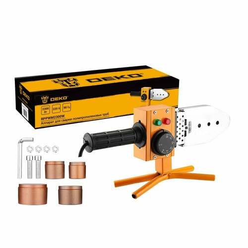 Аппарат для сварки полипропиленовых труб DEKO RPPWM2300W обеспечивает надежное и герметичное соединение труб и фитингов, изготовленных из полипропилена и других полимеров. Поставляется в картонной коробке, в комплекте с подставкой и 4 насадками (20-40 мм). Подходит для использования в сфере бытовых и профессиональных работ. Прост и эффективен в применении. Имеет мечевидную форму нагревателя.