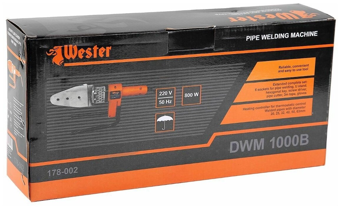 | Особенности | 25, 32, 40, 50, 6 насадок для сварки труб (O 20, 63 мм) |