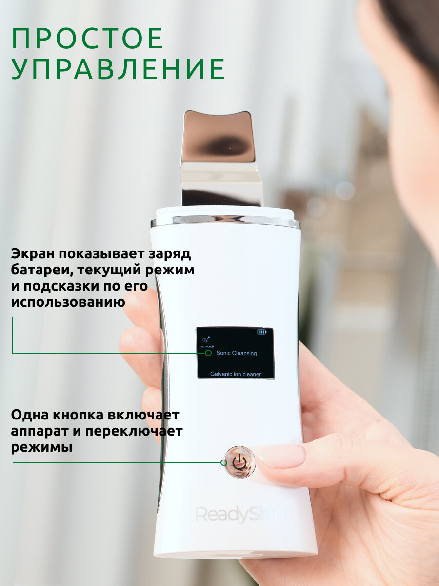 Бьюти-гаджет очищает, выравнивает, увлажняет и подтягивает кожу, борется с возрастными изменениями, черными точками и другими несовершенствами. Для этого в устройстве предусмотрены 5 режимов работы: