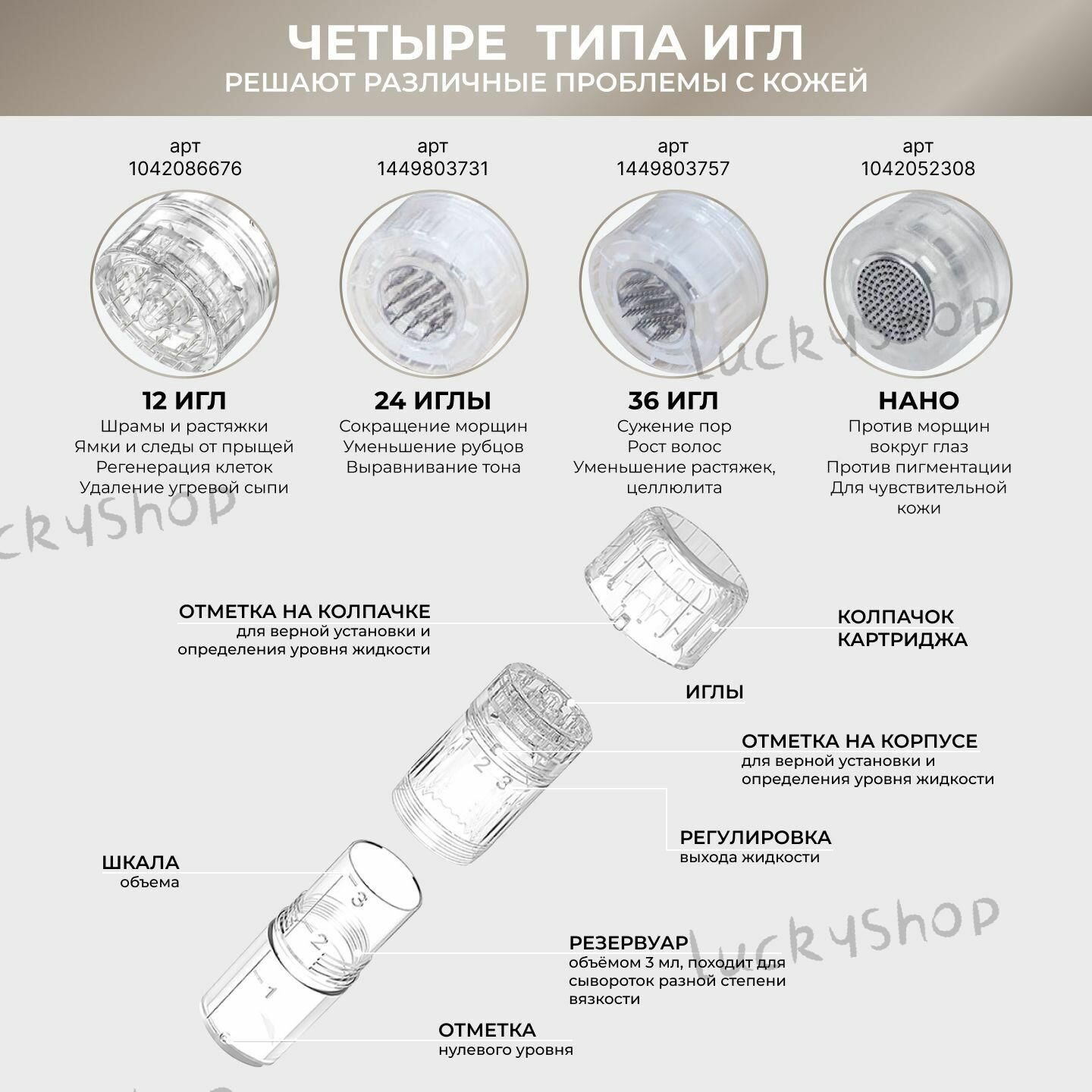 · Доступные картриджи: 12 игл, нано-HR, нано-HS