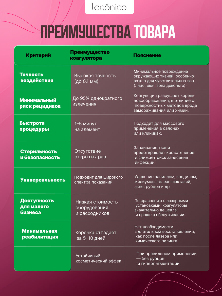 Косметологический аппарат для удаления папиллом, бородавок и шипиц с кожи лица, рук и тела. Это лазерная ручка для коагуляции позволяет эффективно устранять папилломы и бородавки, а также тату и пигментацию, не повреждая окружающие ткани. Процедура отличается безболезненностью и минимальным временем восстановления - лазер. Удобный в использовании, прибор подходит как для домашних процедур, так и для профессионального применения в косметологических кабинетах. Лазерный коагулятор - данное средство обеспечивает высокую точность и комфорт в удалении папилом на шее.