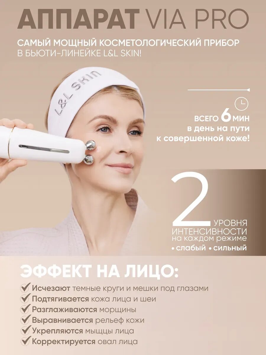 Косметический аппарат Японского бренда L&L Skin с технологиями LED, RF и EMS лифтинга Via PRO - это надежное и эффективное решение для ухода за кожей лица.