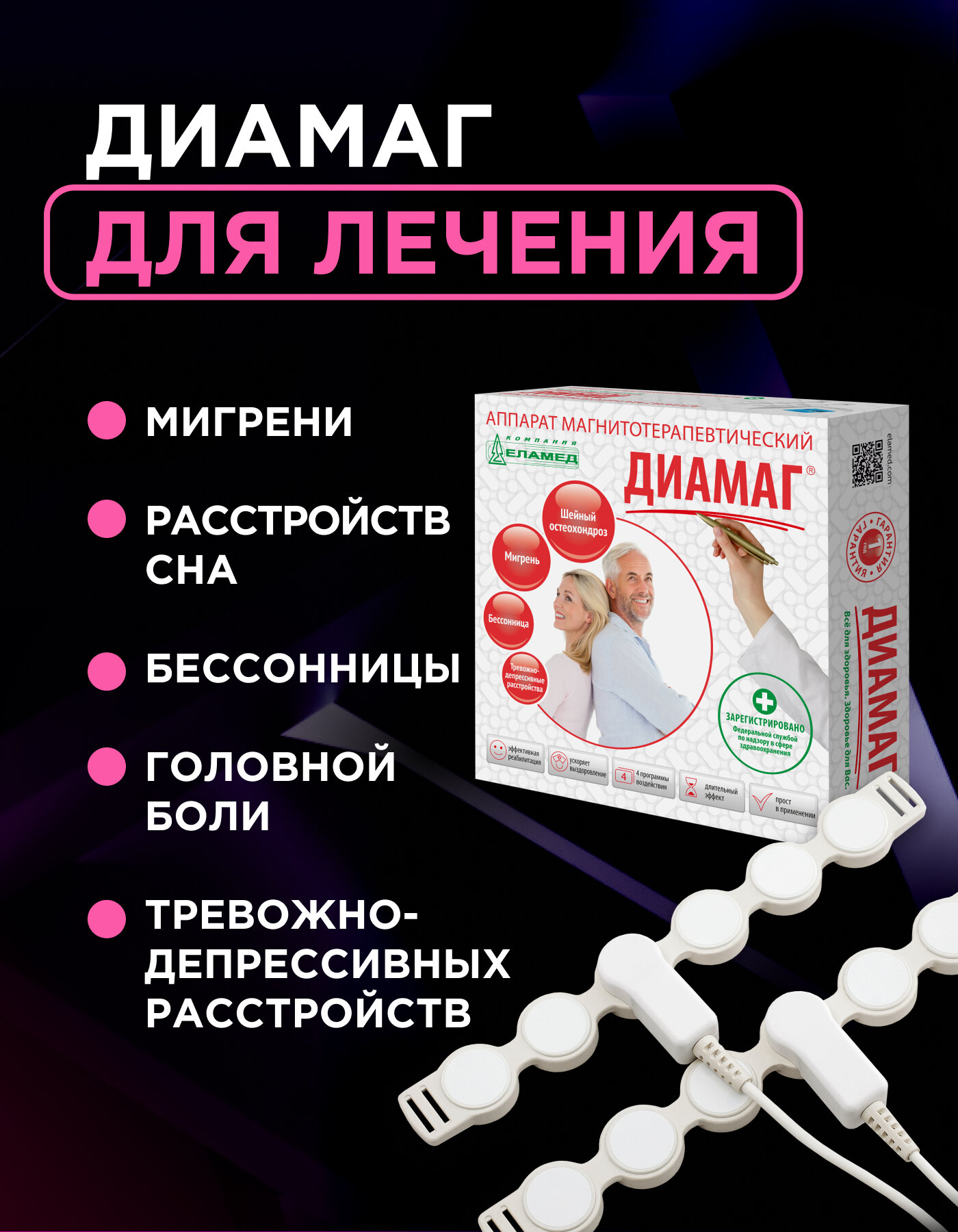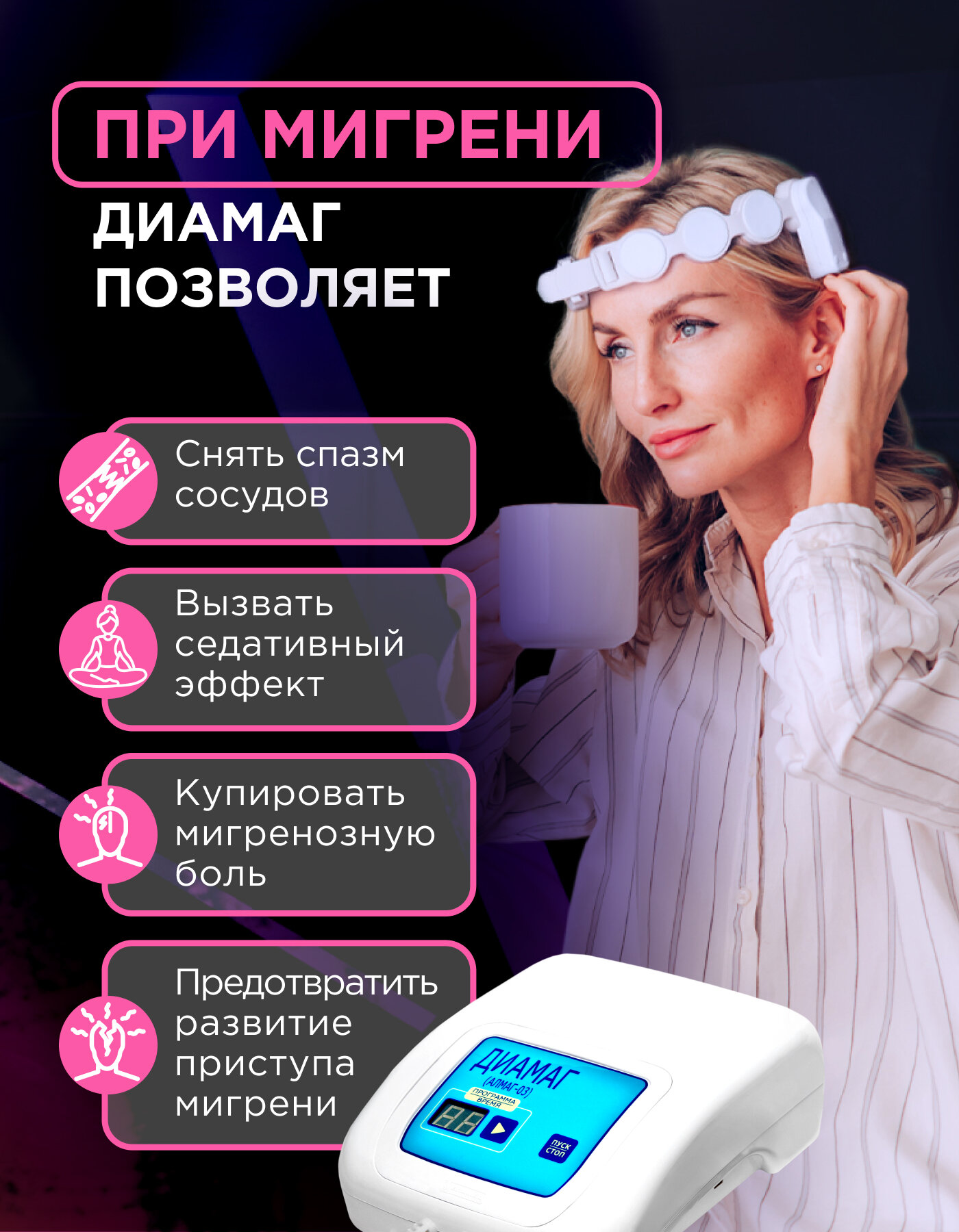 Диамаг (АЛМАГ-03) – физиотерапевтический аппарат для лечения и профилактики головных болей, депрессивных и тревожных расстройств, нарушений сна. Может использоваться как в медицинском учреждении, так и в домашних условиях[1].