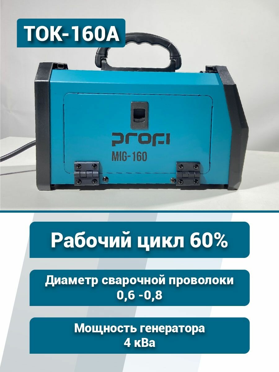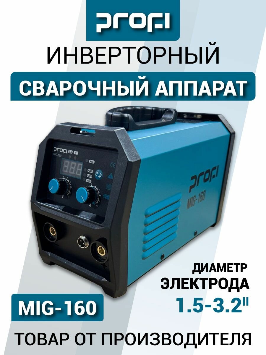 Аппарат сварочный инверторный полуавтомат PROFI MIG-160, 160 А, MIG / MMA, проволока 0.60.8 мм, электрод 1.53.2 мм, рабочий цикл 60 %, генератор от 4 кВА: сравнение цен, характеристики, фото, актуальное наличие и цены.