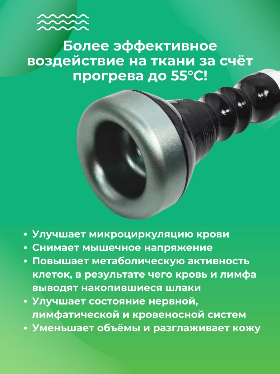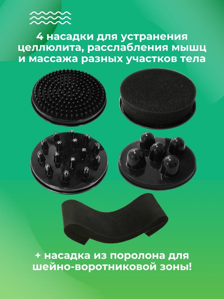 Аппарат оборудован пятью разными насадками для вибромассажа, что позволяет эффективно воздействовать на различные участки тела.