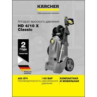 Купить Аппарат высокого давления Karcher HD 4/10 X Classic 1.520-976.0, 400 л/ч, максимальное рабочее давление 145 бар, интегрированный барабан для шланга с доставкой по всей России. Аппарат высокого давления Karcher HD 4/10 X Classic 1.520-976.0, 400 л/ч, максимальное рабочее давление 145 бар, интегрированный барабан для шланга: сравнение цен, характеристики, фото, актуальное наличие и цены.