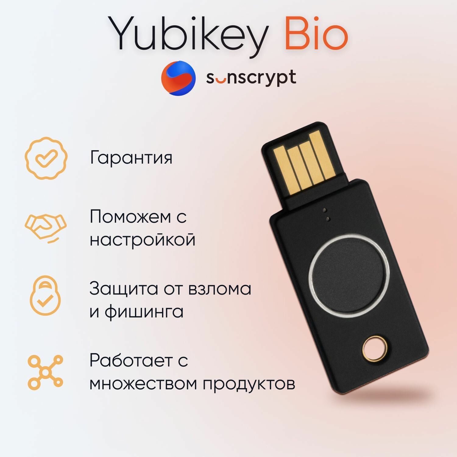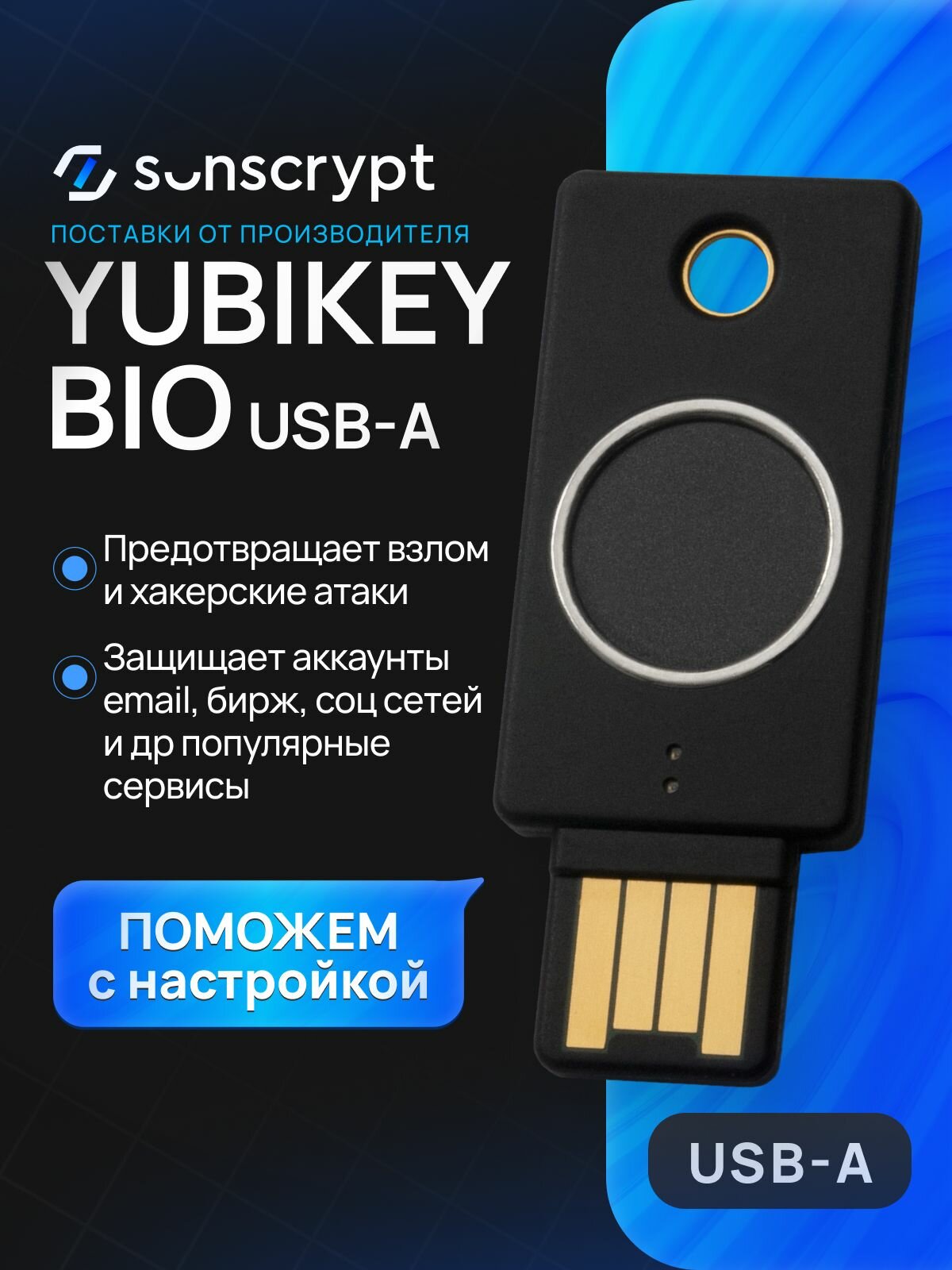YubiKey Bio FIDO Edition – это устройство с биометрической аутентификацией, которое обеспечивает быстрый беспарольный вход в аккаунт по отпечатку пальца, и асимметричной криптографией. Аппаратный аутентификатор предназначен для использования с настольным компьютером и работает без аккумулятора. Портативный YubiKey Bio подключается к устройству через USB-A.