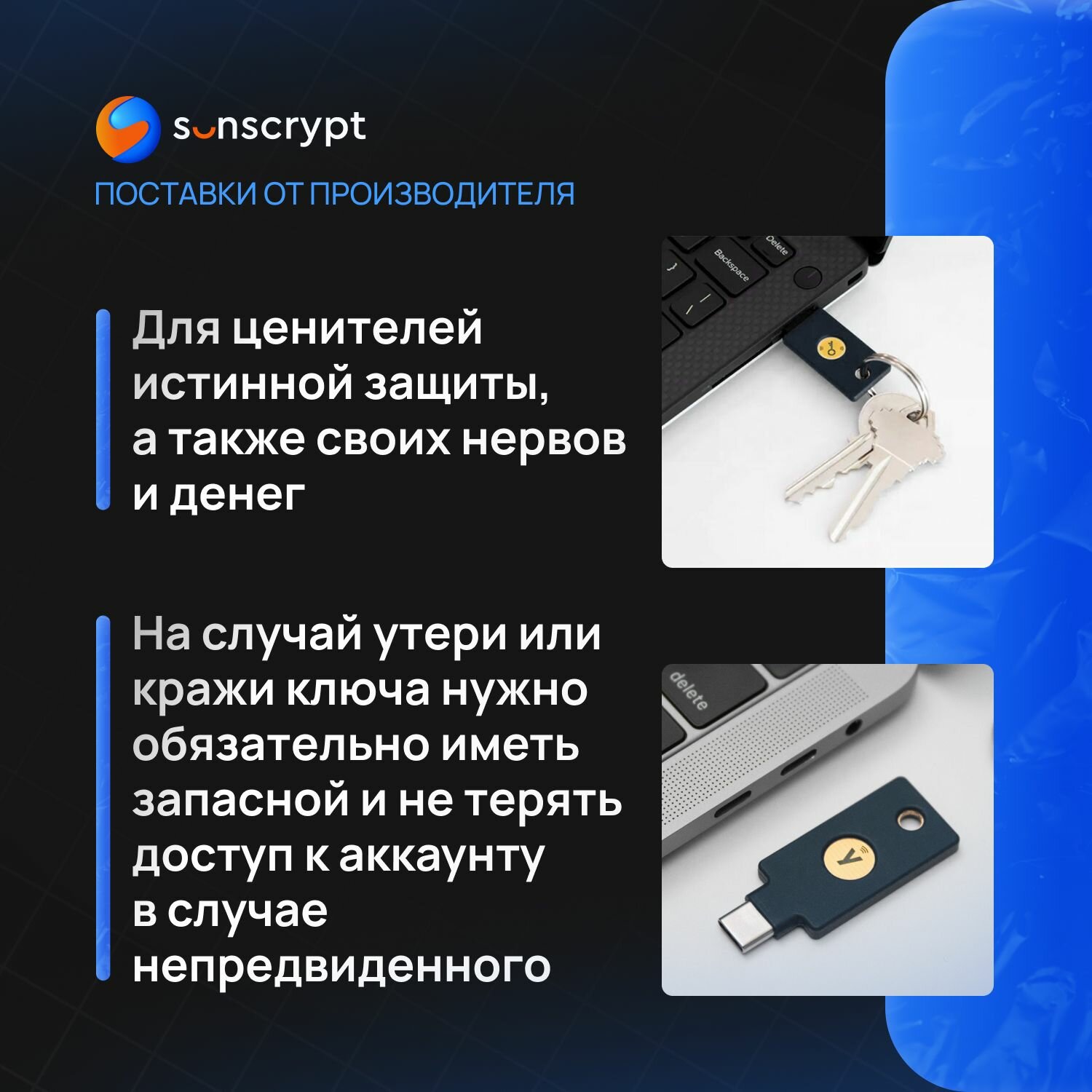 Security Key C NFC от Yubico сочетает в себе возможности аппаратной аутентификации, криптографии на основе открытых ключей, и протоколов U2F и FIDO2, для предотвращения взломов учетных записей. Данные ключи предоставляют наивысший уровень надежности при аутентификации с Twitter, Facebook, Gmail, GitHub, Dropbox, Dashlane, Salesforce, Duo, Centrify и сотнями других сервисов, совместимых с U2F и FIDO2.