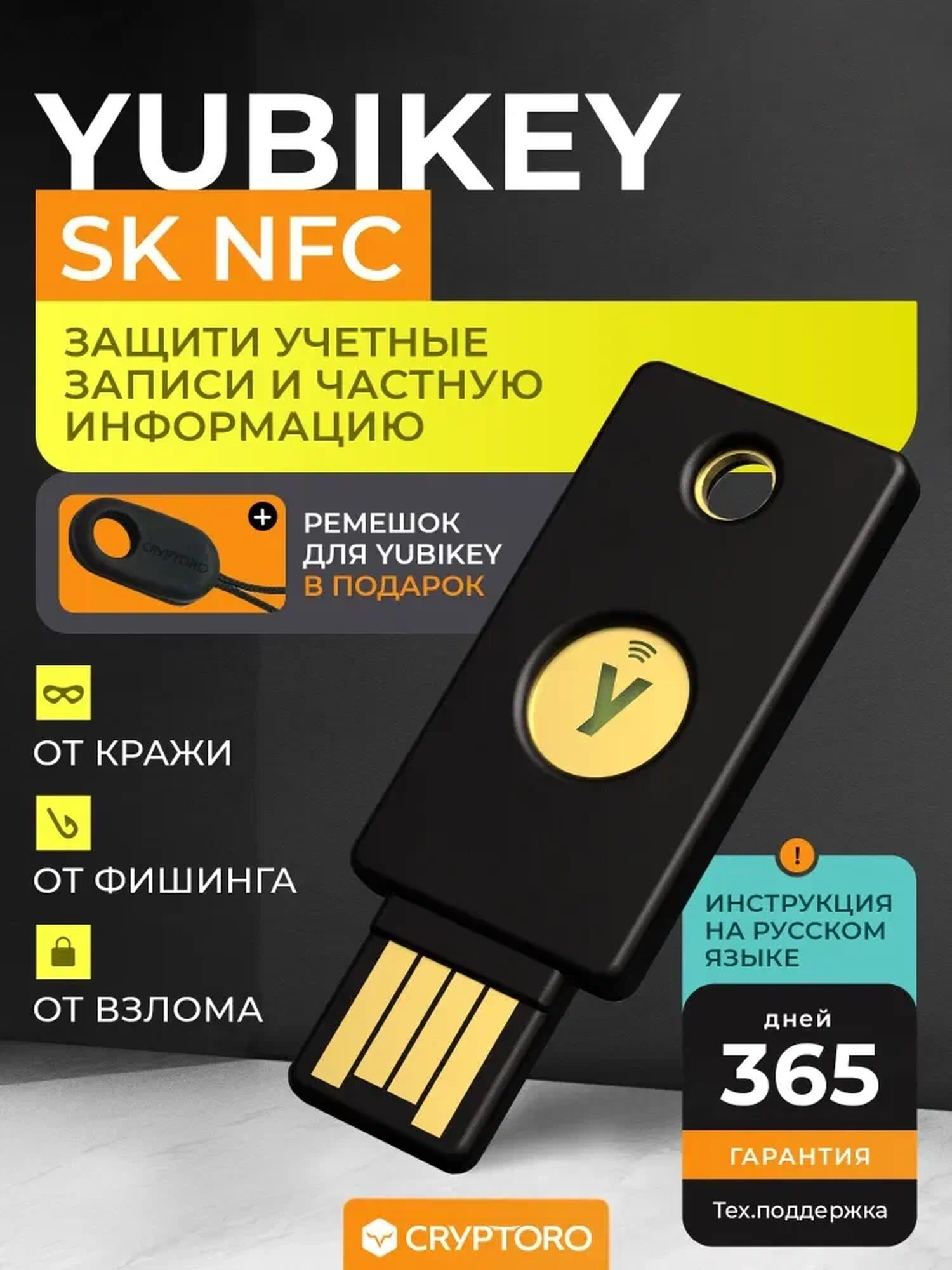 Yubikey Security Key NFC USB-A– надежное аппаратное устройство для защиты от взлома учетных записей в прочном и водонепроницаемом корпусе. Аппаратная однофакторная и двухфакторная аутентификация на основе открытых ключей и протоколов U2F и FIDO2. Работает с Gmail, Dropbox, Facebook, Twitter и другими сервисами. Поддерживает Chrome, Safari и остальные популярные браузеры на базе ОС Windows, MacOS и Linux. Возможно подключение к смартфонам через интерфейс USB-A.
