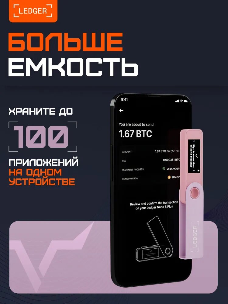 Аппаратный кошелек Ledger Nano S Plus Pastel Pink предоставляет возможность создания резервных копий ключей BIP39 (в целом аналогичный стандарт, что и у других аппаратных кошельков типа Trezor, Ellipal, Bitbox и другие), установки PIN-кода от 6 до 8 цифр и создания скрытых кошельков с помощью кодовой фразы и двух резервных PIN-кодов. Поскольку приватные ключи находятся на холодном кошельке и никогда не покидают его, устройство позволяет безопасно пользоваться криптоактивами. Вся важная информация будет отображаться на дисплее аппаратного кошелька Ledger Nano S Plus, и транзакции осуществляются путем нажатия на фронтальные кнопки устройства. Поддерживаемые монеты включают в себя BTC, ETH, DOT, TRX, BCH, DASH, ADA, ZEC, MATIC, SOL, XRP, USDT (TRC20), (ERC20), LTC, DOGE, BNB, BEP20, ATOM, XLM и другие, более чем 5500 коинов и токенов. Технические характеристики включают в себя чип ST33K1M5, материал из пластика и металла (защита), возможность создания множества адресов, совместимость с 64-битными ПК и программой Ledger Live (Windows 10+, macOS, Linux). Кроме того, младший брат Ledger Nano X поддерживает web-версию с интеграцией MetaMask и другими браузерами, включая Google Chrome. Ledger Nano S Plus совместим с Android через кабель (OTG).