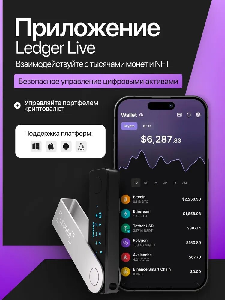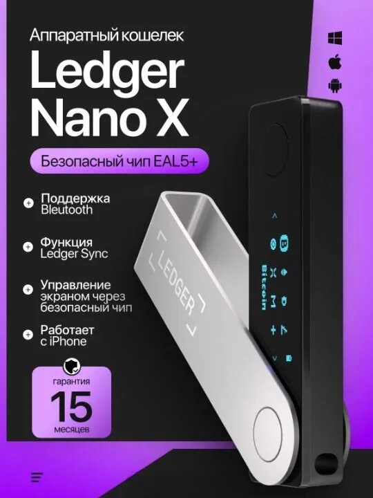 Аппаратный криптокошелек Ledger Nano X Black 2025 — холодный кошелек для криптовалют, чехол в подарок от официального реселлера HODL: сравнение цен, характеристики, фото, актуальное наличие и цены.