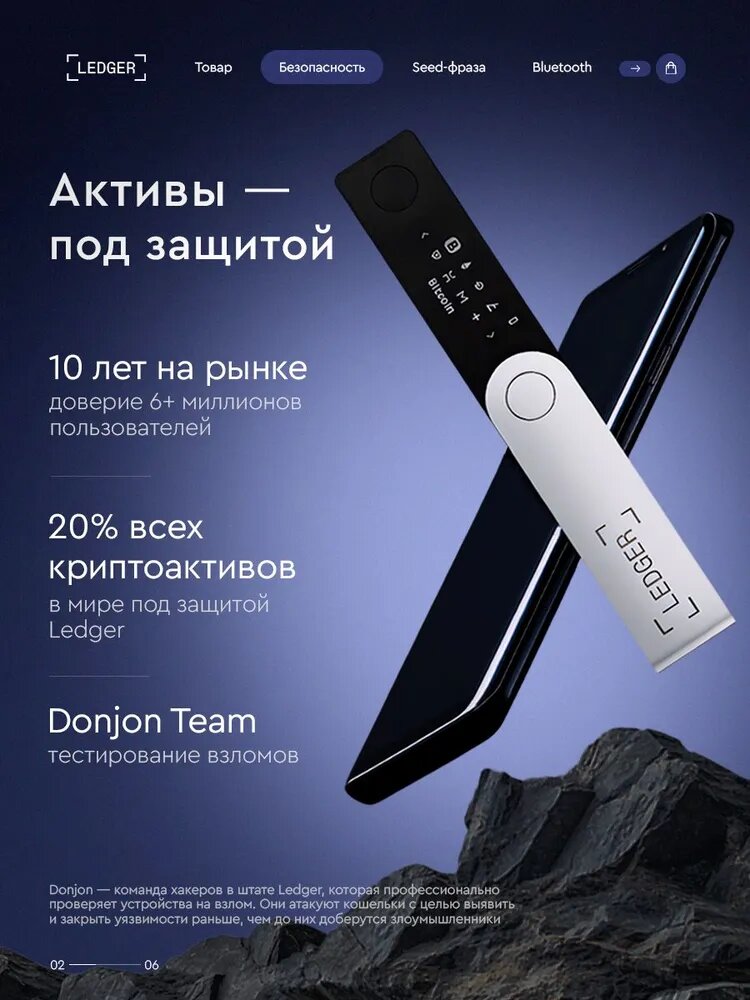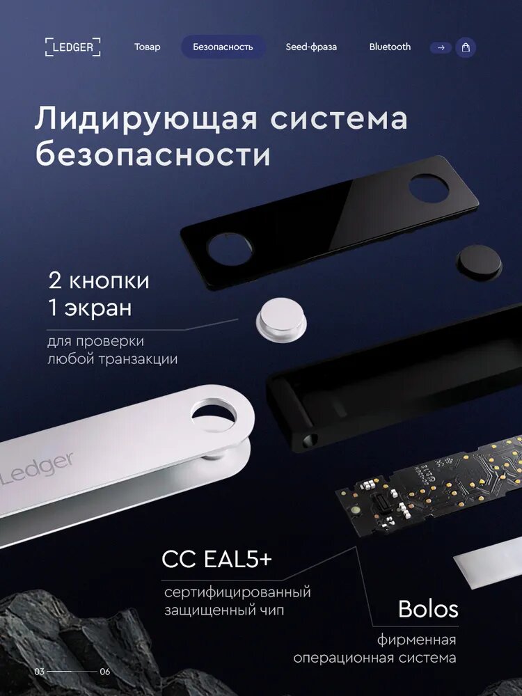 Новая модель Ledger с более широким дисплеем и увеличенной памятью, которая позволяет загрузить более 100 приложений для работы с разными криптовалютами и возможностями. Новинка имеет поддержку Bluetooth соединения со смартфоном. Это позволяет совершать транзакции через мобильный телефон. Холодный криптокошелек Ledger Nano X оснащен аккумулятором для автономной работы аппаратного кошелька со смартфоном без подключения к ПК. По заявлению разработчиков, подключение через Bluetooth не снижает безопасность кошелька, потому что все действия необходимо будет подтверждать на аппаратном кошельке по аналогии с младшей моделью. Особенности: Аппаратный кошелек Ledger Nano X - это защищенное Bluetooth-устройство, которое хранит ваши личные ключи. Подходит для управления большим количеством криптоактивов одновременно и с одного гаджета Благодаря мобильному приложению Ledger Live для iOS и Android, с устройством удобно работать через смартфон. Вы также сможете подключить криптокошелек к своему компьютеру через USB - есть версии Ledger Live для Windows, macOS и Linux Для надежности всех операций в аппаратном кошельке реализован принцип полной изоляции от компьютера и смартфона (которые можно взломать). Гаджет оснащен небольшим дисплеем для проверки транзакций и функциональными кнопками До 100 приложений в одном кошельке: установите на леджер нано х до 100 приложений для работы с криптовалютой, включая Bitcoin, Ethereum, XRP, Bitcoin Cash, EOS, Stellar и многие другие. Чтобы расширить список активов, вы можете использовать сторонние совместимые кошельки Управление со смартфона: подключите Ваш Ledger Nano X к смартфону, чтобы настроить кошелек и управлять криптоактивами в любом месте. Проверяйте баланс, отправляйте и принимайте 20+ видов криптовалюты и 1200+ токенов стандарта ERC20 через приложение Ledger Live Передовые технологии безопасности: ваши личные ключи хранятся в сертифицированном чипе безопасности (CC EAL5+) - такой же используется в кредитных картах и биометрических паспортах Устройство работает на базе уникальной операционной системы BOLOS, разработанной в Ledger. Это индивидуальный «щит» от внешних атак вокруг каждого приложения в вашем кошельке Все операции выводятся на экран гаджета и подтверждаются нажатием кнопок на корпусе При совершении каждой транзакции также необходимо вводить PIN-код Простое восстановление данных: используйте кодовую фразу из 24 слов, полученную при первом подключении кошелька, чтобы восстановить доступ к своим данным на любом устройстве Ledger Основные характеристики: Операционная система BOLOS Тип валюты Bitcoin, Ethereum, XRP, Bitcoin Cash, EOS, Stellar и другие Вместимость 100 приложений Уровень сертификации CC EAL5+ Чипы ST33J2M0 (secure) + STM32WB55 Беспроводное подключение Bluetooth Интерфейс USB Type-C Размер корпуса 7.2x1.8x1.1 см Вес 34 г Тип управления электронное, кнопочное Дисплей OLED, 128x64 Message Digest: RIPEMD160, SHA224, SHA256, SHA384, SHA512, SHA3, SHA3-XOF, KECCAK, BLAKE2B Grostl Cryptography Key, with key generation: DES (56, 112, 168 bits), AES (128, 192, 256 bits), ECC (256 bits), RSA (1024, 2048, 3072,4096 bits) RSA encryption with PKCS1 v1.5, PKCS1 OEAP NOPAD schemes HMAC Signature: HMAC-SHA256, HMAC-SHA512 RSA Signature with PKCS1 v1.5 PKCS1 PSS schemes Elliptic Curve Signature: ECDSA/EC-Schnorr (SECP256K1, SECP256R1, Brainpool256R1, Brainpool256T1), EdDSA (Ed25519) Elliptic Curve Diffie Hellman: ECDH (SECP256K1, SECP256R1, SECP521R1, Brainpool256R1, Brainpool256T1, Curve25519) Symmetric Cryptography: DES, Triple-DES, AES with ISO9797M1, ISO9797M2 NOPAD schemes Random Number Generation: RND, Prime RND (hardware support TRNG), NIST SP 800-90A CTR DRBG Защита от механических повреждений поворачивающийся колпачок Совместимость с ПК х64 система (Windows 10+, macOS 10.8+, Linux), исключа
