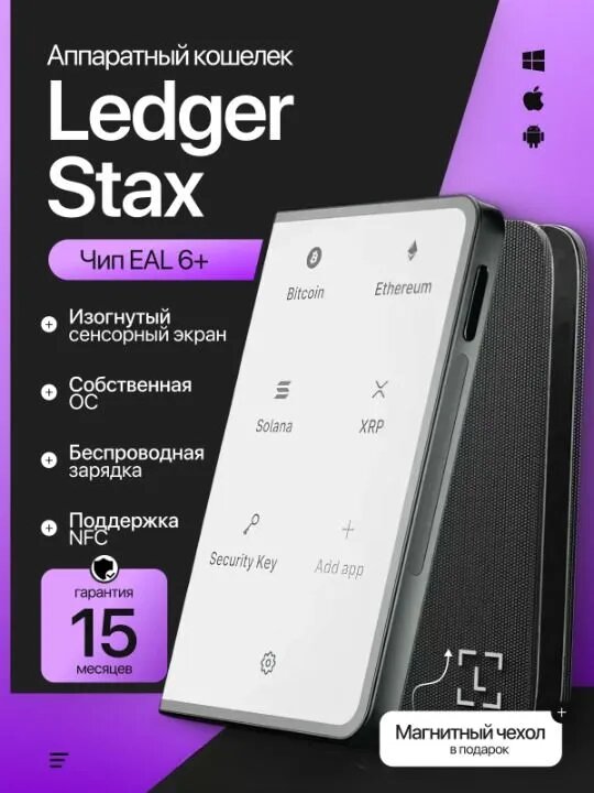 Аппаратный кошелек, криптокошелек Ledger Stax + чехол Magnet Shell + Recovery key — от официального реселлера CAPSLOCKS: сравнение цен, характеристики, фото, актуальное наличие и цены.