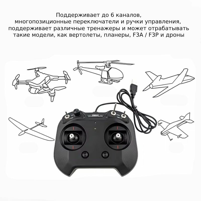 Совместимое программное обеспечение для моделирования: APK, Aerofly, Reflex XTR 5.0, G3 / G3.5/ G4 / G5 / G6 / G7, PhoenixRC 2.0/ 3.0S / 4.0M / 5, FMS и др.