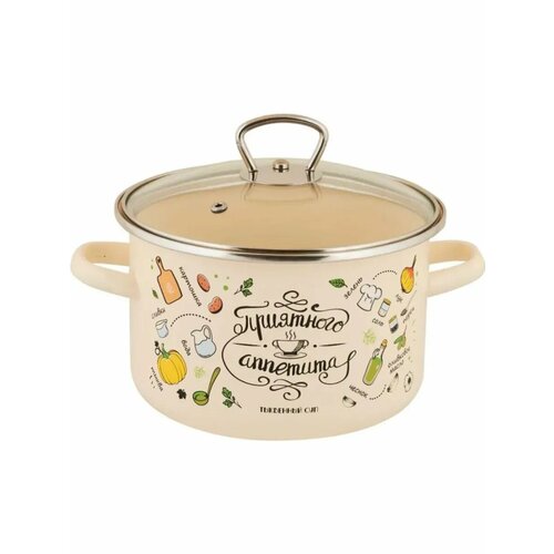 Кастрюля Appetite Приятного аппетита 3 л эмалированная сталь с крышкой. Серия посуды "Приятного аппетита "кастрюля 3 л - это небольшая книга рецептов, призванная дарить вдохновение и ежедневно помогать на кухне. Каждое изделие уникально, на разных предметах серии можно найти свой рисунок, рецепт или наводку на него. У каждой хозяйки свой борщ, у каждого хозяина свой рецепт мяса, и потрясающее разнообразие блюд - это то прекрасное, чему мы можем радоваться каждый день. Посуда очень экологична, не вступает в реакцию с пищевыми кислотами и щелочами, тем самым сохраняется вкус пищи, в нее не попадают вредные для здоровья человека соединения. В кастрюле можно не только готовить, но и безопасно хранить пищу. Кастрюля также подходит для заготовок и маринования, для шашлыков, для супов, для квашения - это универсальная посуда на кухне! Кастрюля с крышкой отличается высоким качеством, гладкая непористая поверхность посуды обеспечивает простой и легкий уход. Изделие подходит для всех видов плит: индукционных, газовых, электрических, стеклокерамических. Можно мыть в посудомоечной машине. Объем: 3 л. Диаметр: 14 см. Высота: 12, 4 см. Вес: 0, 9 кг. перед первым использованием требуется тщательно промыть изделия; хранить изделия в чистом, сухом виде; не рекомендуется использовать губки с абразивным слоем; не рекомендуется промывка изделий в посудомоечной машине с использованием моющих средств, в состав которых входит активный кислород. Материал: Эмалированная сталь, стекло;