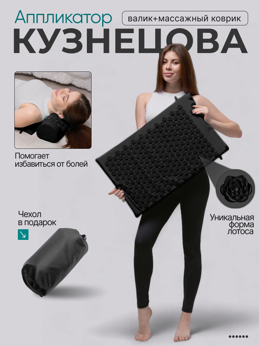 Аппликатор Кузнецова: массажный коврик и валик для спины и шеи Аппликатор Кузнецова представляет собой набор из коврика и валика, предназначенный для массажа спины и шеи. Этот акупунктурный массажер способствует расслаблению мышц и улучшению кровообращения, что делает его незаменимым помощником в борьбе с усталостью и напряжением. Аппликатор Кузнецова от Skiville – это тибетский игольчатый массажер, который зарекомендовал себя как эффективное средство для снятия напряжения и усталости. Он помогает улучшить общее состояние здоровья и стать вашим персональным тренером по расслаблению. Массажный коврик и валик изготовлены из качественных материалов, обеспечивающих долговечность и безопасность использования. Вы можете быть уверены в том, что аппликатор прослужит вам долгое время и не вызовет неприятных ощущений во время использования. Аппликатор Кузнецова – это не просто массажер, это ваш персональный тренер по расслаблению и улучшению общего состояния здоровья. Он поможет вам снять напряжение и усталость, улучшить кровообращение и общее самочувствие.